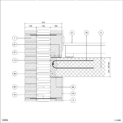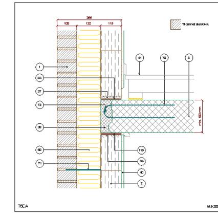Bagmur: Højisolerende tegl Letklinkerdæk Rækkehus. Fri kant Letklinkerdæk Etageadskillelse (lodret snit) Isolerende teglblokke i bagmur Kombinationsvæg, 355 mm U-værdier U,l: 0.24