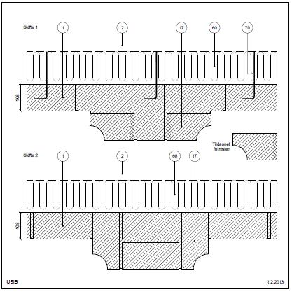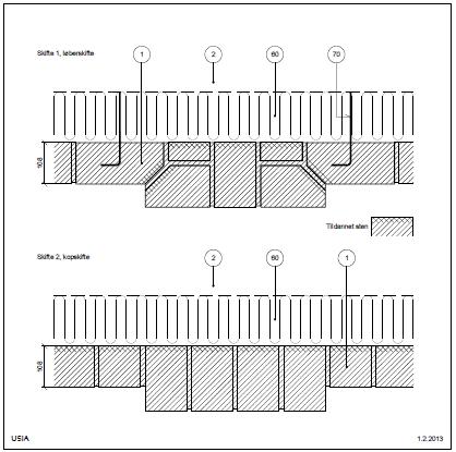Bagmur: Krydsforbandt Formur (lodret snit) Pilaster