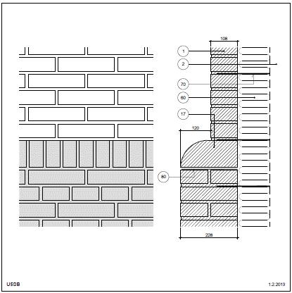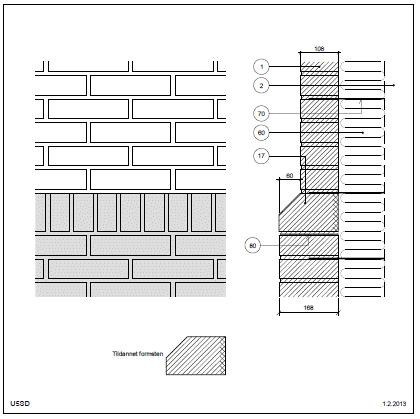 Bagmur: Formur (lodret snit) Spring i facade Bånd med formsten nr. A11
