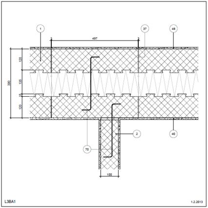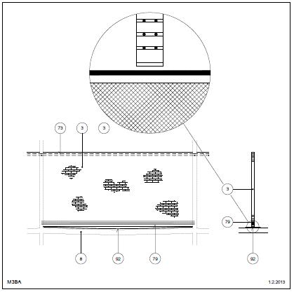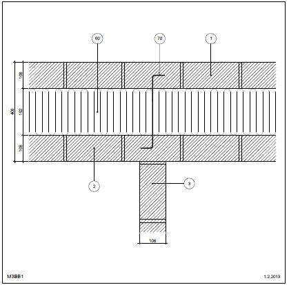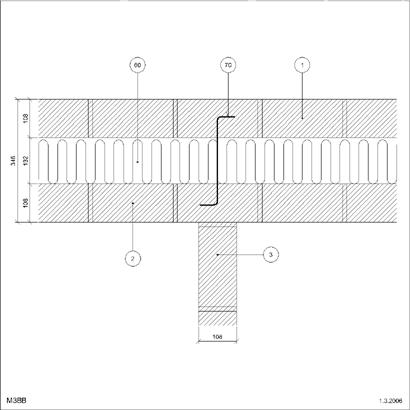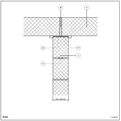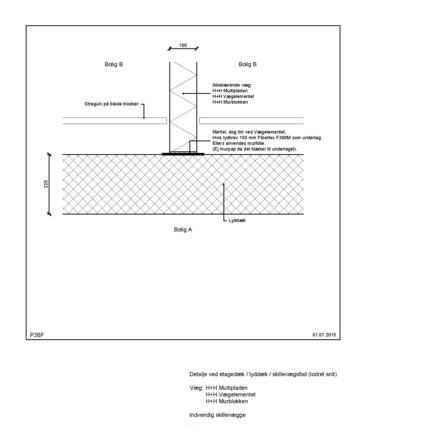 Bagmur: Porebeton Etageadskillelse ved ikke bærende skillevæg Indvendig etagehus Etageadskillelse ved ikke bærende skillevæg Porebeton Detalje ved etagedæk/skillevægs fod (lodret snit)