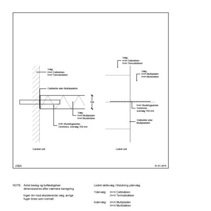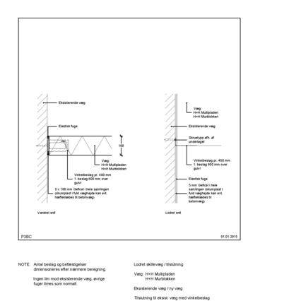 Bagmur: Porebeton Ny væg Lodret skillevæg/tilslutning Porebeton Ny væg Eksisterende væg Med lydkrav Tilslutnig til eksisterende væg med vinkelbeslag