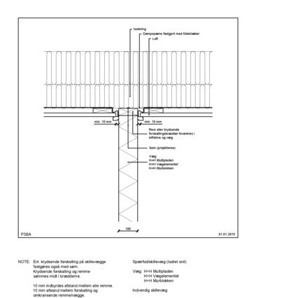 Bagmur: Porebeton Indvendig skillevæg Spærfod/skillevæg (lodret snit) Porebeton Indvendig skillevæg