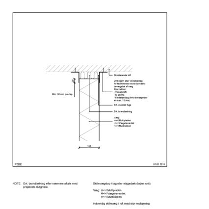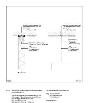 Bagmur: Porebeton Loft Skillevægstop Loft Porebeton Lodret skillevæg/tilslutning Tilslutning til eksisterende loft med H+H fjederbeslag