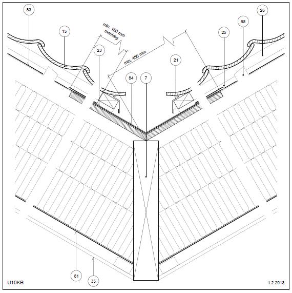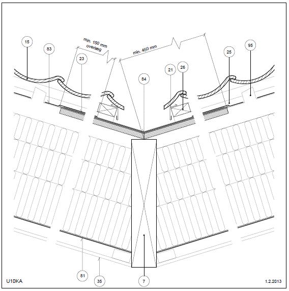 Bagmur: Skotrender Tag (lodret snit) 25° taghældning