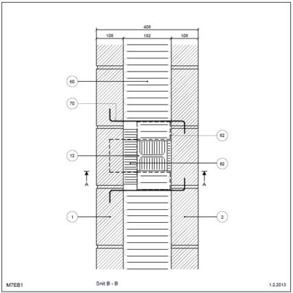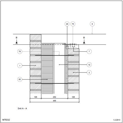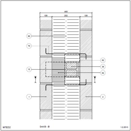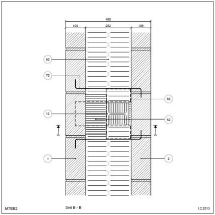 Bagmur: Tegl Løsning ved top, snit B – B Tilslutning (lodret snit) Tegl i bagmur Søjle Hulmur, 468 mm