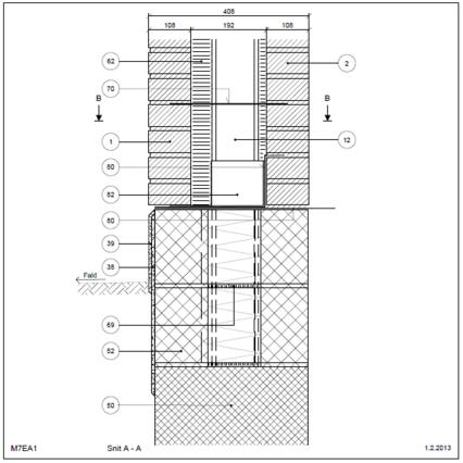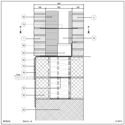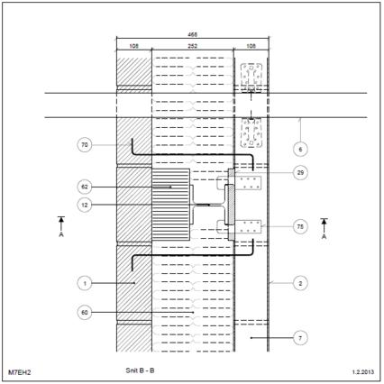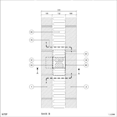 Bagmur: Tegl Hulmur, 468 mm Tilslutning (lodret snit) Tegl i bagmur Stålsøjle I, snit B – B Søjle Hulmur, 468 mm U-værdier U,l: 0.14 kuldebro (1): 0.18