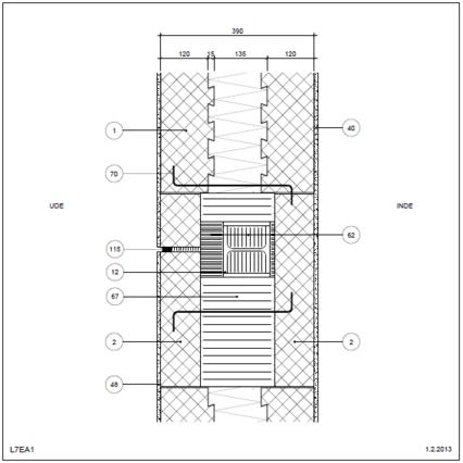 Bagmur: Leca Termblokke Søjle i ydermur, vandret snit Tilslutning (vandret snit) Leca blokke 100 mm Tilpasset isolering Stålsøjle HE100B Ydervæg: Leca Termblokke 390 mm U-værdier U,l: 0.2