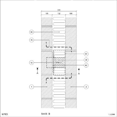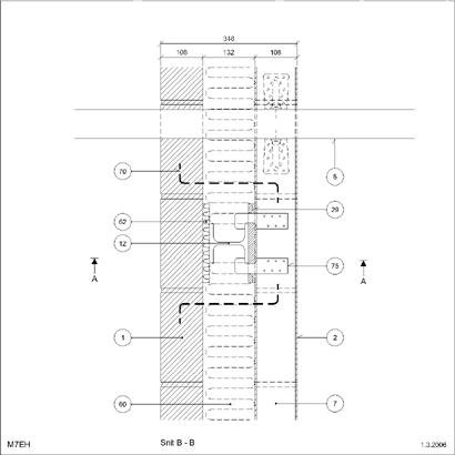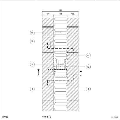Bagmur: Tegl Løsning ved top, snit B – B Tilslutning (lodret snit) Tegl i bagmur Løsning ved top, snit B – B Søjle Hulmur, 348 mm