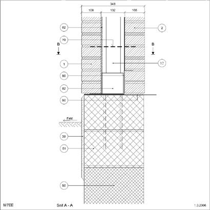 Bagmur: Tegl Tilslutning (lodret snit) Løsning ved top, snit A – A Søjle Løsning ved top, snit A – A Tegl i bagmur Hulmur, 348 mm