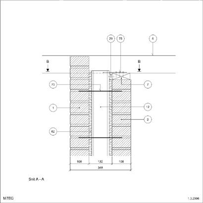 Bagmur: Tegl Hulmur, 468 mm Tilslutning (lodret snit) Søjle Stålsøjle I, snit A – A Tegl i bagmur Hulmur, 468 mm