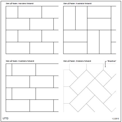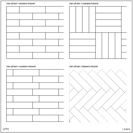 Bagmur: Mønstre I Udendørsbelægninger Tilslutning (lodret snit) Teglgulv Sten på kant med ca. 12 mm fuge