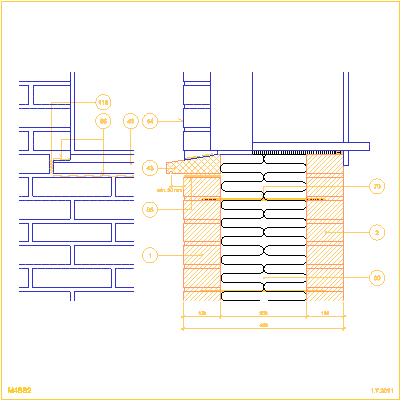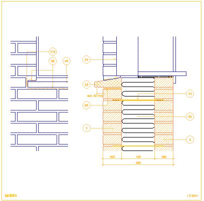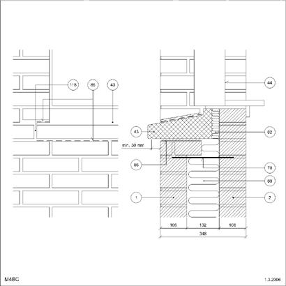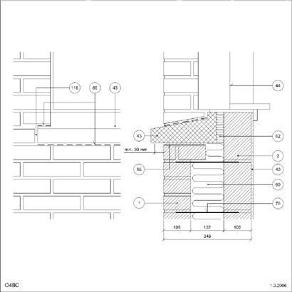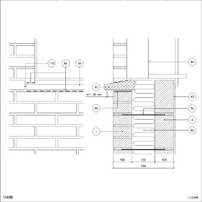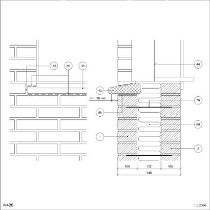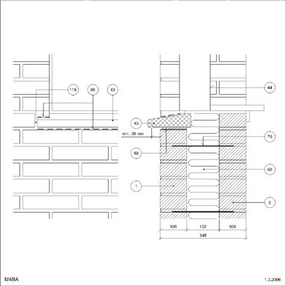 Bagmur: Teglblokke Teglblokke Vindue (lodret snit) Teglblokke i bagmur Betonsålbænk Fremskudt vindue med lysningspanel Hulmur, 348 mm U-værdier U,l: 0.27 kuldebro (1): 0.32