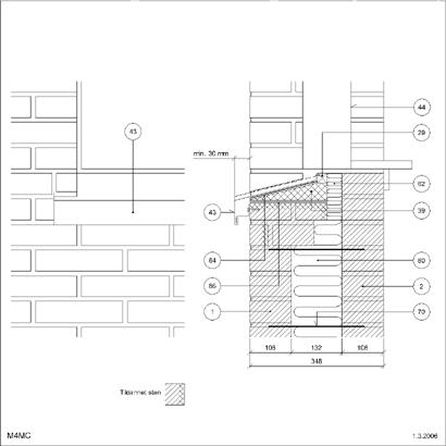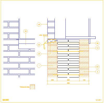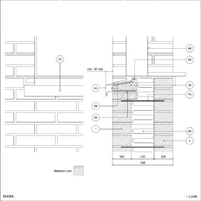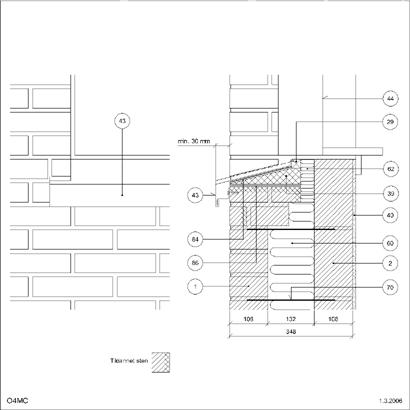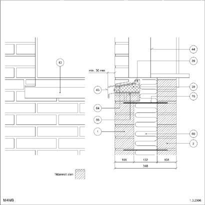 Bagmur: Teglblokke Teglblokke Metalsålbænk Fremskudt vindue med lysningspanel Teglblokke i bagmur Vindue (lodret snit) Hulmur, 348 mm U-værdier U,l: 0.27 kuldebro (1): 0.34