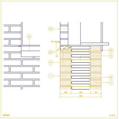 Bagmur: Tegl Hulmur, 468 mm Vindue (lodret snit) Fremskudt vindue med lysningspanel Metalsålbænk Tegl i bagmur Hulmur, 468 mm U-værdier U,l: 0.14 kuldebro (1): 0.16
