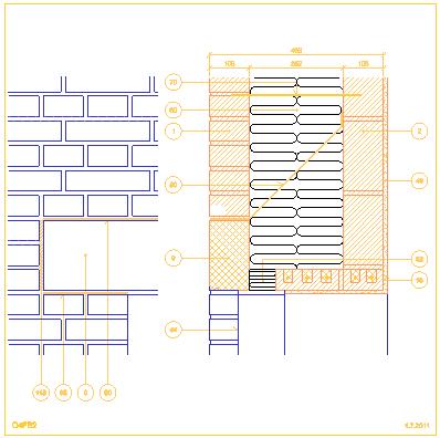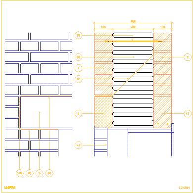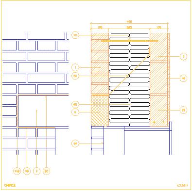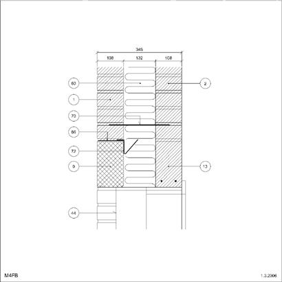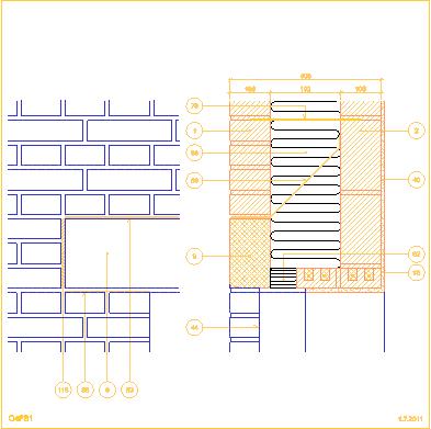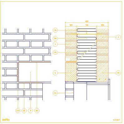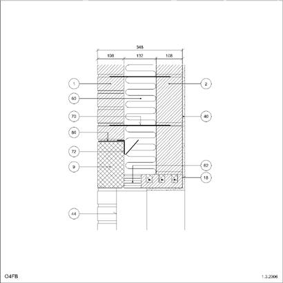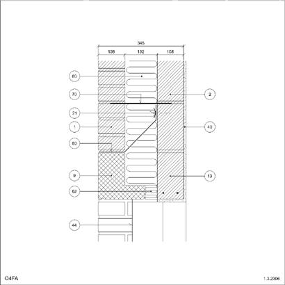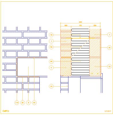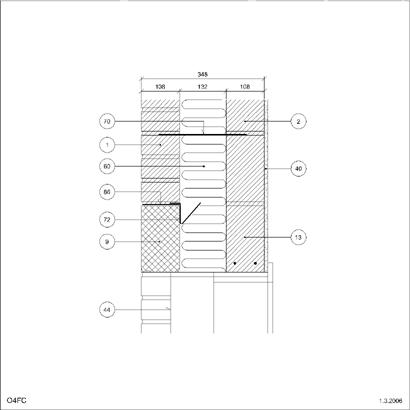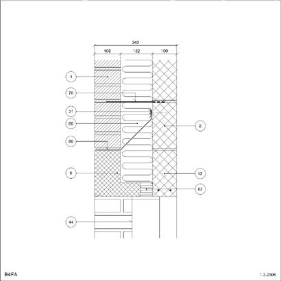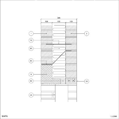 Bagmur: Letklinkerblokke Komb.væg, 340 mm Vindue (lodret snit) Letklinkeroverligger i bagmur Kombinationsvæg, 340 mm Øvre fals. Betonbjælke i formur Letklinker i bagmur