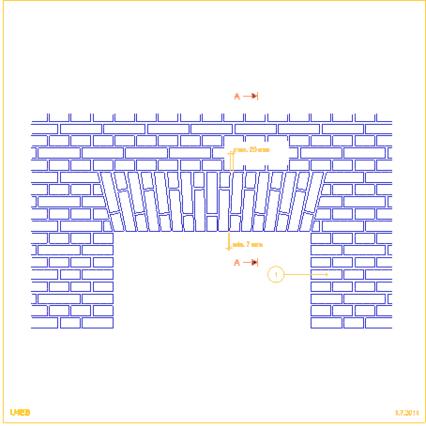 Bagmur: 1½-stens stik, opstalt Tegl i bagmur Vindue (lodret snit) Øvre fals. Med pap