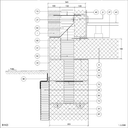 Bagmur: Letklinkerblokke EPS drænplade, 75 mm Sokkel (lodret snit) Blokke/kælder Polystyren drænplade, 75 mm Term-blokke. Letklinkerblokke med armering, 350 mm Letklinkerblokke i bagmur Kombinationsvæg, 340 mm